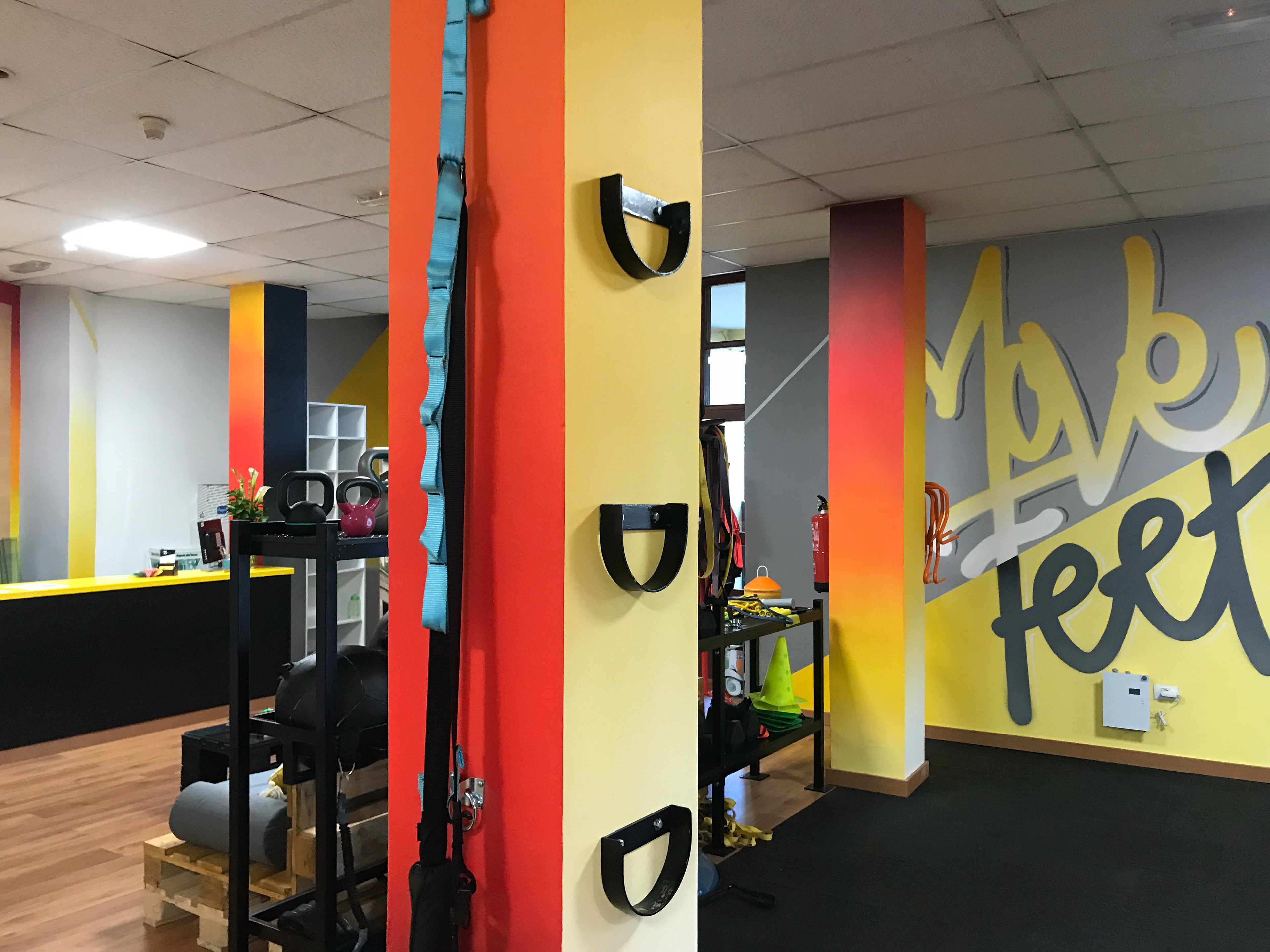 Identidad Corporativa y diseño de interior para Centro Deportivo Move Feet. Ubicado en el municipio de Teror, Gran Canaria. España.
