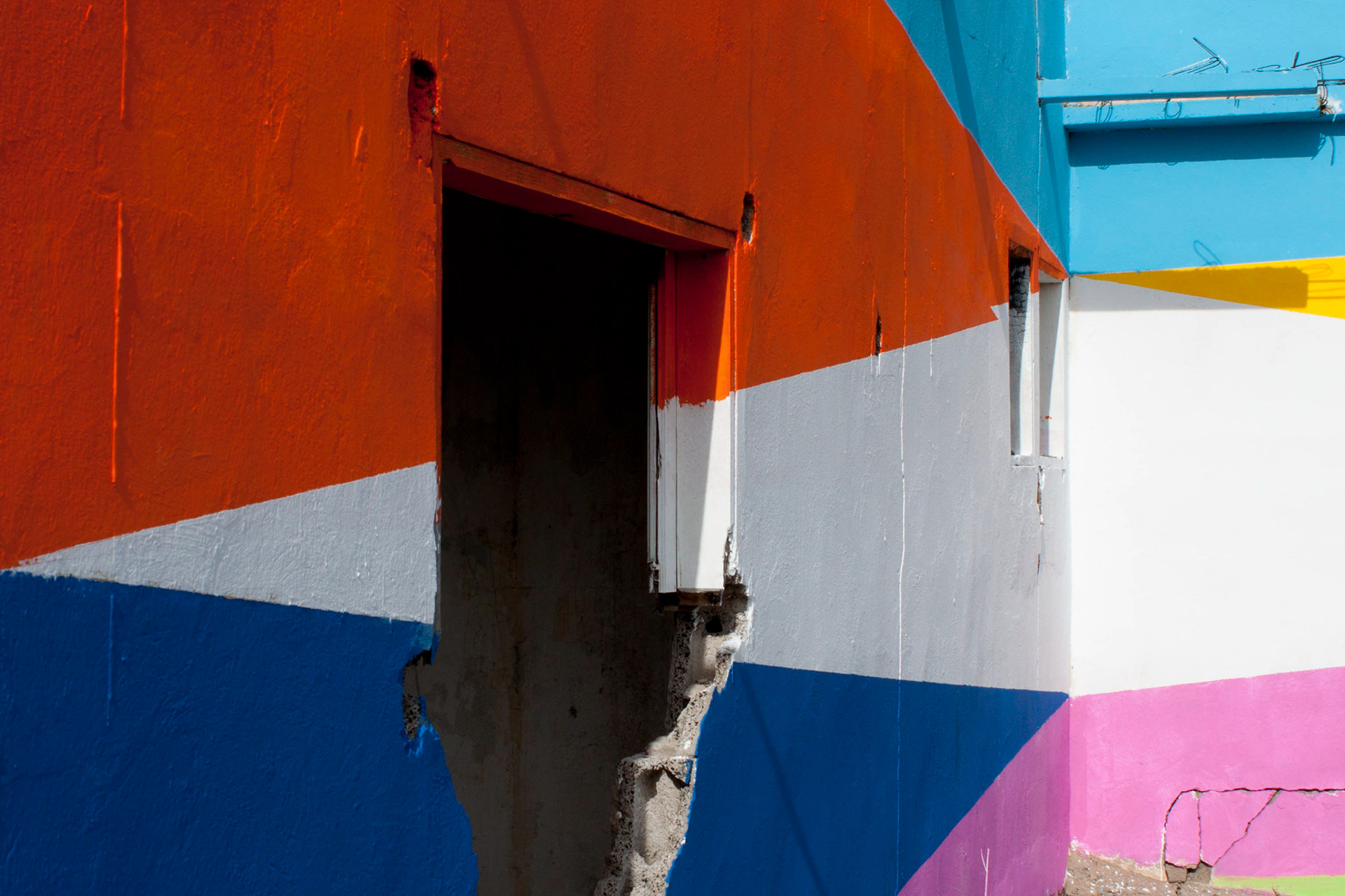 Intervención de color, sobre casa abandonada en el Barrio de Los Giles, Las Palmas de Gran Canaria. Abril 2013